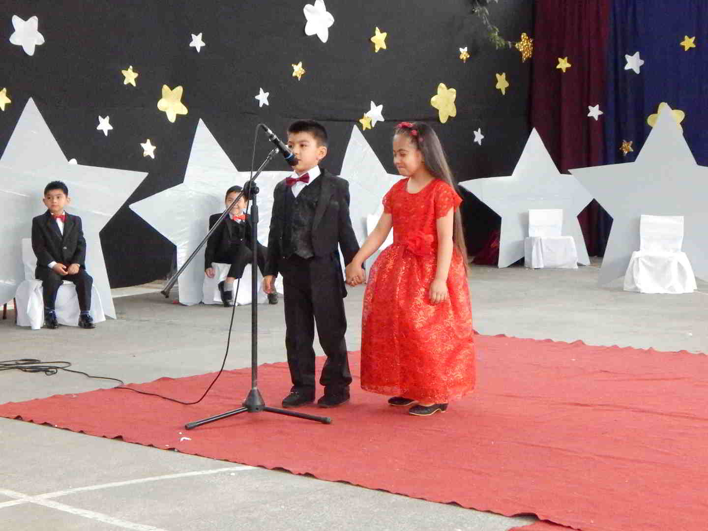 Ellos dirigiendo su propia ceremonia con habilidades trabajadas desarrolladas durante estos dos años en las habilidades de comunicación oral.